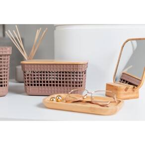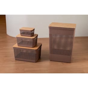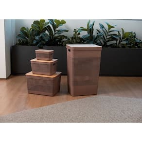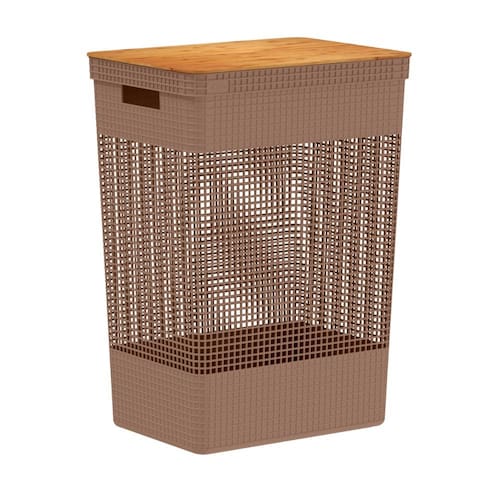 Cesto de Roupa Grid Marrom Amêndoa 49 L com Tampa de Bambu 38 x 28 x 55,6 cm Ou - Na sua casa!