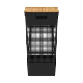 Cesto de Roupa Grid Preto 49 L com Tampa de Bambu 38 x 28 x 55,6 cm Ou