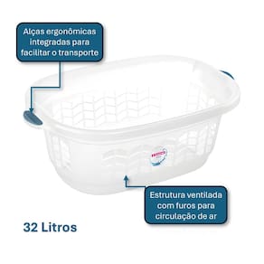 Cesto com design integrado com os baldes e bacias da Linha Hydrus Sanremo, fácil de transportar e inteligente: permite a visualização do conteúdo e evita a formação de odores das roupas sujas. Vai ser um sucesso na sua lavanderia.