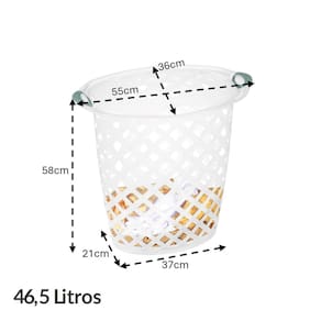 Cesto organizador com design moderno, tampa e totalmente telado: ideal para acondicionar as roupas sujas pois a passagem de ar evita o mau odor e você tem melhor visualização do conteúdo interno. E a praticidade não fica só nisso: possui também pegas laterais que ajudam no vai e vem do dia a dia.