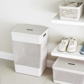 Cesto De Roupa Suja Tampa Grid 49L Organizador Área Serviço - Branco