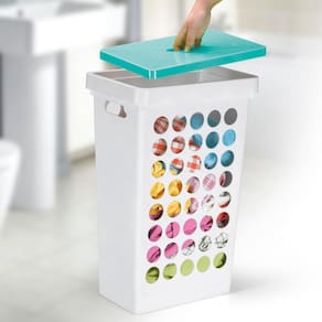 Apesar da sua capacidade volumétrica, ideal para facilitar no dia a dia, o cesto da Arthi ocupa pouco espaço devido ao seu formato estreito.