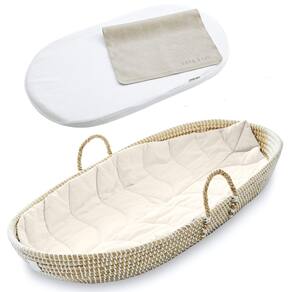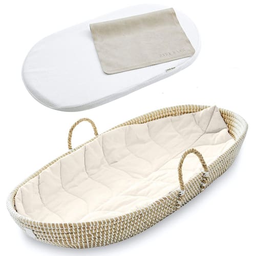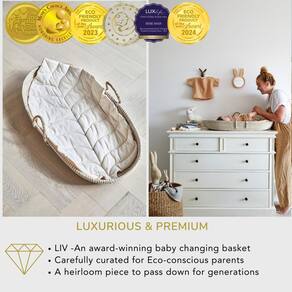 cesta de troca de bebê, cesta de moisés para bebês, diga adeus à almofada comum de troca de fraldas! O trocador LIV é uma nova abordagem do trocador tradicional. A cesta é feita à mão a partir de algas marinhas naturais macias com um tecido de plástico reciclado branco. Se você está criando um berçário ecológico ou procurando um presente de chá de bebê que seja um pouco diferente de qualquer outra pessoa, você está no lugar certo! Somos BEBE BASK, e nossos produtos são feitos especificamente com amor pelo seu pequeno. Nossas cestas de bebê são essenciais para os primeiros meses de vida do seu recém-nascido. Com estilo, sofisticação e um compromisso incrível com o meio ambiente, eles são o novo item essencial para qualquer mamãe. Com uma cesta de troca BEBE BASK Moses, você oferece um ambiente ideal para o seu bebê, que não ocupa muito espaço em sua casa e é portátil para que aonde quer que você vá, o bebê também possa. Nossos produtos são certificados de comércio justo e ecológicos. Cada peça tem imperfeições naturais que criam sua beleza "única", então você nunca encontrará outra igual à sua. As cestas BEBE BASK são uma peça de relíquia de família, que podem ser transmitidas por gerações e não são apenas para bebês! Use-os como barcos de brincar, cestas de aconchego para crianças, armazenamento de brinquedos ou cestas de animais de estimação! Cuidado e durará uma vida inteira. Instruções de cuidados: a superfície da alga marinha natural pode ser facilmente limpa com um pano úmido e deixada secar ao ar livre em uma área aberta. Cada peça é única, então variações de tamanho, cor e acabamento ocorrerão. Tamanho: aproximadamente 78,7 x 44,5 x 11,4 cm. - Vencedor do prêmio – O trocador de fraldas "Liv" da Bebe Bask foi reconhecido por vários prêmios de prestígio. Descrito como uma "abordagem nova e luxuosa de um trocador tradicional". Descubra por que ele se tornou um favorito entre os pais... - Cesta de grama marinha 100% sustentável – feita usando materiais, tornando este trocador estilo vime uma escolha sustentável para passar para as gerações futuras. Possui alças de corda natural para facilitar a movimentação também e inclui os seguintes acessórios luxuosos.. - Forro em forma de folha para fotos inesquecíveis – um design luxuoso exclusivo da BEBE BASK torna este trocador portátil um acessório ideal para fotos de bebês para fazer fotos memoráveis de bebês. Algodão macio acolchoado e lavável na máquina - Suporte superior para maior conforto – a cesta vem com uma almofada de espuma viscoelástica extragrossa de 2,5 cm que amortece a cabeça e o corpo do seu bebê. Envolto em uma capa jacquard de bambu removível, ultra suave e resistente à água para peles sensíveis, seu bebê ficará confortável e confortável durante a troca de fraldas - Proteção avançada e toque macio e sedoso – complementado por um forro de cesta ultramacio em uma mistura de bambu que segue perfeitamente as paredes da cesta, criando um santuário ideal durante os primeiros meses do seu recém-nascido - Tapete de troca de couro vegano - é a melhor solução para trocas de fraldas sem complicações. Com sua superfície limpa e resistente à água, você pode trocar a fralda do seu bebê na cesta ou guardá-la em sua bolsa de fraldas e está pronto para a troca de fraldas mais elegante em movimento - Multifuncional – A cesta de troca de fraldas de alta qualidade da Bebe Bask é feita para fazer parte da jornada de infância do seu pequeno por muitos anos. Quando os dias da fralda terminarem, use a cesta como um armazenamento de brinquedos de rastejamento, armazenamento embaixo da cama ou cesta para animais de estimação - Totalmente certificado e em conformidade – o compromisso BEBE BASK com a segurança se reflete em ser totalmente certificado e garantir que cada produto atenda aos mais altos padrões dentro dos regulamentos CPSC - 100% feito à mão pela Mamas para mamas: a Bebe Basks apoia famílias de comércio justo ao se envolver com mulheres vietnamitas que trabalham em casa. Nós os visitamos pessoalmente para ter certeza de que sua renda ajuda a continuar esta bela arte de artesanato
