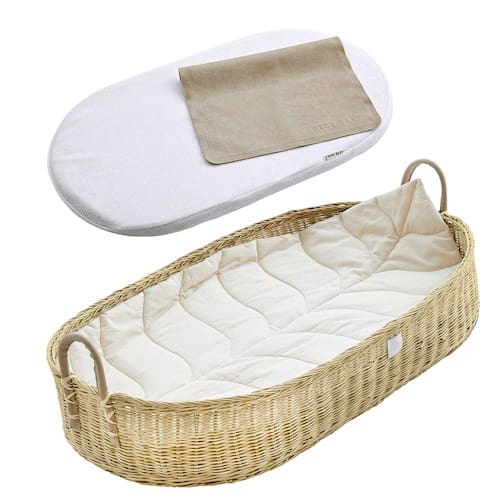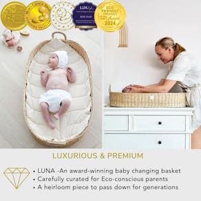 Diga adeus à almofada comum de troca de fraldas! Para todas as mães, apresentamos orgulhosamente nossos trocadores de bebê, uma nova abordagem de um trocador tradicional. Se você está criando um berçário ecológico ou procurando um presente de chá de bebê que seja um pouco diferente de qualquer outra pessoa, você está no lugar certo! Somos BEBE BASK, e nossos produtos são feitos especificamente com amor pelo seu pequeno. Nossas cestas de bebê são essenciais para os primeiros meses de vida do seu recém-nascido. Com estilo, sofisticação e um compromisso incrível com o meio ambiente, eles são o novo item essencial para qualquer mamãe. Com uma cesta BEBE BASK você oferece um ambiente ideal para o seu bebê, que não ocupa muito espaço em sua casa e é portátil para que onde quer que você vá, o bebê também pode ter. Nossos produtos são certificados de comércio justo e ecológicos. Cada peça tem imperfeições naturais que criam sua beleza "única", então você nunca encontrará outra igual à sua. Gostamos de pensar que nossas cestas serão usadas por toda a vida e não são apenas para bebês! Nossos amigos e familiares são conhecidos por usá-los como barcos de brincar, cestas de aconchego para crianças, armazenamento de brinquedos no nível de engatinhar, expositores de lojas e como cestas de animais de estimação! Fácil de limpar. Nossas cestas incluem um forro de algodão seguro para máquina de lavar. A superfície do material natural de vime pode ser facilmente limpa com um pano úmido e deixada secar ao ar livre em uma área aberta. - Aproximadamente 76 x 43 x 14 cm (a alça é de couro vegano macio e pode ser dobrada), com pequenas variações de cesta para cesta devido à sua natureza exclusiva de promessa manual. Nossos produtos são completamente feitos à mão do início ao fim. Esta cesta terá variações de cor. - CELEBRADO Vencedor do prêmio – O trocador de fraldas "Luna" da Bebe Bask foi reconhecido por vários prêmios de prestígio. Descrito como uma "abordagem fresca e luxuosa de um trocador tradicional", - Descubra por que ele se tornou um favorito entre os pais... - Cesto de rattan 100% sustentável – feito usando materiais, tornando este trocador estilo vime uma escolha sustentável para passar para as gerações futuras. Possui alças de couro vegano para facilitar a movimentação também e inclui os seguintes acessórios luxuosos.. - Forro em forma de folha para fotos inesquecíveis – um design luxuoso exclusivo da BEBE BASK torna este trocador portátil um acessório ideal para fotos de bebês para fazer fotos memoráveis de bebês. Algodão suavemente acolchoado e lavável na máquina - PROTEÇÃO ELEVADA E TOQUE MACIO DE SEDA - duas razões para sorrir... esta cesta possui laterais extra-altas para maior segurança, complementada por um forro de cesta ultramacio em uma mistura de bambu que segue perfeitamente as paredes da cesta, criando um santuário ideal durante os primeiros meses do seu recém-nascido - Suporte superior para maior conforto – a cesta vem com uma almofada de espuma viscoelástica extragrossa de 2,5 cm que amortece a cabeça e o corpo do seu bebê. Envolto em uma capa jacquard de bambu removível, ultra suave e resistente à água para peles sensíveis, seu bebê ficará confortável e confortável durante a troca de fraldas - Tapete de troca de couro vegano - é a melhor solução para trocas de fraldas sem complicações. Com sua superfície limpa e resistente à água, você pode trocar a fralda do seu bebê na cesta ou embalá-la em sua bolsa de fraldas e está pronto para a troca de fraldas mais elegante em movimento - Multifuncional – A cesta de troca de cesta de moisés de alta qualidade da Bebe Bask é feita para fazer parte da jornada de infância do seu pequeno por muitos anos. Quando os dias da fralda terminarem, use a cesta como um armazenamento de brinquedos de rastejamento, armazenamento sob a cama ou cesta para animais de estimação - 100% feito à mão pela Mamas para mamas: a Bebe Basks apoia famílias Fairtrade ao se envolver com mulheres vietnamitas que trabalham em casa. Nós os visitamos pessoalmente para ter certeza de que sua renda ajuda a continuar esta bela arte de artesanato - GARANTIA DE DEVOLUÇÃO DO DINHEIRO DE 90 DIAS - nós protegemos. Se por algum motivo você não estiver totalmente satisfeito com a compra deste pequeno trocador, sinta-se à vontade para entrar em contato conosco dentro de 90 dias e reembolsaremos você ou alteraremos o produto sem questionar