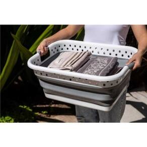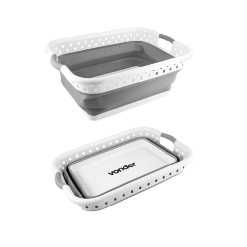 1 Cesto dobrável para roupas. Possui design moderno e compacto, proporcionando melhor aproveitamento de espaço para guardá-lo após o uso, além de alças laterais, que possibilitam maior praticidade no transporte. Indicado para uso doméstico. Para expandir, pressione o fundo até obter o formato completo.
