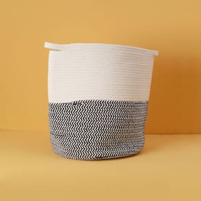 Esse é o cesto duo corda com alças 40cm da OIKOS. Prático: ótimo para armazenar e organizar mantas, roupas, toalhas, acessórios, livros, brinquedos, plantas e muito mais. Estruturado: todo feito em corda de algodão, ele é bem resistente para sustentar todos seus objetos. Versátil: vai bem em qualquer ambiente da casa: na sala, na varanda, no quarto, no escritório, no banheiro e também serve como cachepot. você que manda! Funcional: esse cesto deixa tudo em ordem na casa, sem falar que otimiza os espaços e ainda traz um ar mais convidativo para cada cantinho. Fácil de carregar: as alças facilitam o manuseio e o transporte pela casa. Duo decorativo: o charme desse cesto fica por conta do duo de cores. branco e preto é uma combinação clássica que harmoniza com diversos estilos de decoração, deixando sua casa mais aconchegante e cheia de bossa.