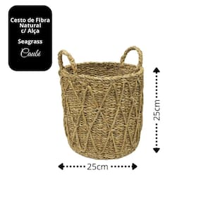 Cesto Seagrass Fibra Natural Trançado Alças Caubi 25cm
