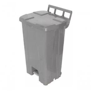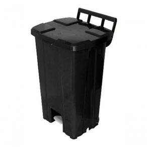 Lixeira plástica quadrada com pedal e rodas.