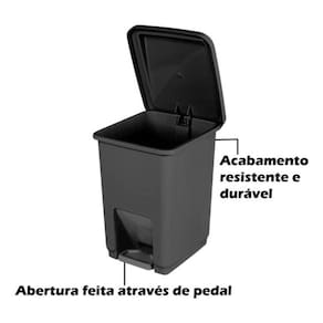Lixeira com design arrojado, mix de texturas acetinadas e detalhes em brilho. Pedal reforçado e com acionamento preciso, com haste rígida que garante o desempenho na abertura. Resistente e fácil de limpar.