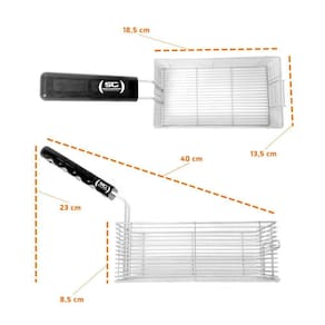 Medidas do cesto: Medidas úteis: 8,5cm a x 23cm l x 12,8cm p; Medidas totais: 23cm a x 40cm l x 23cm p; Tamanho da embalagem: 18cm a x 44cm l x 22cm p; Peso líquido: 480g; Peso bruto: 800g.