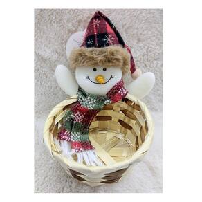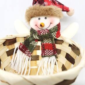 -01 unidade cesto palha natalino com boneco de neve pelúcia 15cm