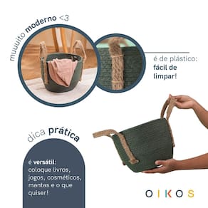 "conheça o cesto duo tramado com alças 24cm de corda da Oikos!