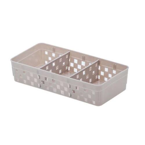 Cesto Organizador Com Divisórias Quadratta 23x11x5 Cm Claro Descrição:O Cesto Organizador Com Divisórias Quadratta 23x11x5 cm é ideal para quem busca praticidade e eficiência na organização de pequenos objetos. Fabricado em plástico resistente, ele conta com três divisórias removíveis, permitindo adaptar o espaço conforme sua necessidade. Perfeito para gavetas, armários, escritórios, cozinhas ou banheiros, este organizador combina funcionalidade e um design discreto. A cor clara proporciona leveza visual, se adaptando a qualquer ambiente e facilitando a visualização dos itens armazenados. Descrição Técnica (sem caracteres especiais):Produto Cesto Organizador com DivisoriasMarca ParamountCor ClaroMaterial PlasticoDimensoes 23 x 11 x 5 cm Comprimento x Largura x AlturaUso indicado Organizacao de gavetas armarios escritorio cozinha banheiroPossui divisorias removiveis SimEmpilhavel Nao especificadoResistente a umidade Nao especificado