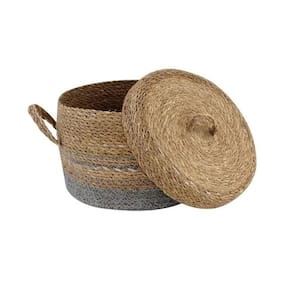Cesto Organizador Com Tampa e Alças De Seagrass Zoes - Jolitex MEK M -