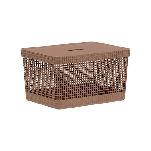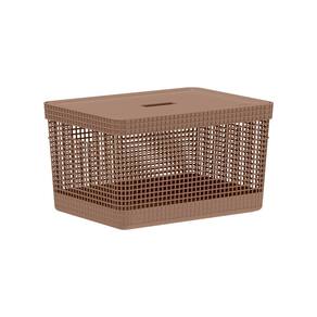 Cesto Organizador com Tampa Grid Marrom Amêndoa 20L - Ou