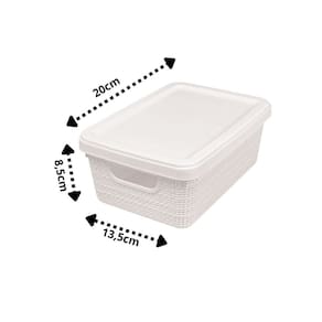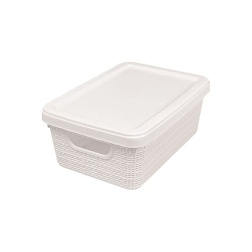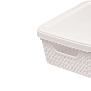Com uma textura inspirada no tecido juta, essa caixa possui capacidade de 1,8 litros. Sua tampa permite uma organização flexível, e ela pode ser empilhada com outros tamanhos da linha.