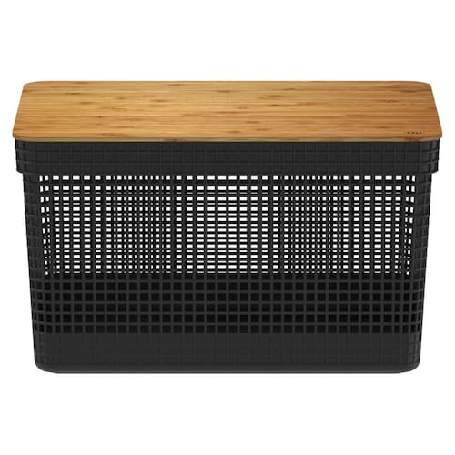 A linha de Cestos Grid foi desenvolvida com um mix perfeito entre conforto, design e funcionalidade. Os cestos possuem diversos tamanhos, são empilháveis e versáteis.Podem ser utilizados em closets, cozinhas, lavanderias ou até mesmo na sala de estar para decorar.O Cesto Organizador Grid 20 Litros com Tampa de Bambu Preto OU possui medidas de 39cm-profundidade x 29cm-largura x 22,6cm-lltura e a capacidade de 20 litros. Além de possuir tampa em bambu que traz um toque a mais de sofisticação e elegância para qualquer ambiente da sua casa.Os Cestos Grid são perfeitos para aliar organização e decoração na sua casaCódigo de Barras:7908466013868 Referência:CG355PTF Marca: OU Composição/Material:Polipropileno e Bambu Dimensões aproximadas do produto (cm):26,2x29x39 cm Peso aproximado do produto (kg):1.126 kg