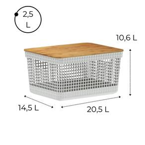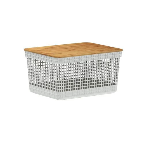 Podem ser utilizados em closets, cozinhas, lavanderias ou até mesmo na sala de estar para decorar. O Cesto Organizador Grid Com Tampa De Bambu possui medidas de : 10.6cm altura- Largura 14.5cm-profundidade 20.5cm e a capacidade de 2,5 litros. Além de possuir tampa em bambu que traz um toque a mais de sofisticação e elegância para qualquer ambiente da sua casa.