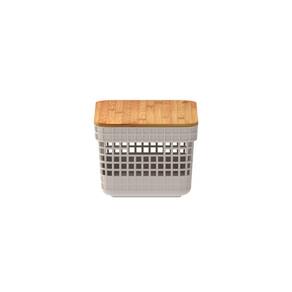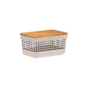 Cesto Organizador Grid Com Tampa Em Bambu 2,5L Ou Bege - Características Gerais do Produto: • Dimensões: 20,3x14,3x10,5cm • Capacidade: 2,5L • Material Principal: Plástico • Linha: Grid • Informações Adicionais: Sugere-se higienizar com sabão neutro e esponja macia, evitando produtos abrasivos no processo de limpeza;