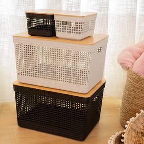 Cesto Organizador Grid Com Tampa Em Bambu 2,5L Ou Bege - Características Gerais do Produto: • Dimensões: 20,3x14,3x10,5cm • Capacidade: 2,5L • Material Principal: Plástico • Linha: Grid • Informações Adicionais: Sugere-se higienizar com sabão neutro e esponja macia, evitando produtos abrasivos no processo de limpeza;