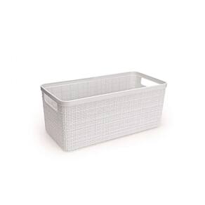 Cesto Organizador Juta Alongada Rattan de Plástico Resistente Capacidade 1,5 Litros 4 Unidades Cor: branco DESCRITIVO TAMANHO P: Peso: 100 g Largura: 9,9 cm Comprimento: 20,8 cm Altura: 8,7 cm Capacidade: 1,5 Litros