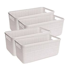 Cesto Organizador Juta Alongada Rattan de Plástico Resistente Capacidade 7,4 Litros 4 Unidades Cor: branco DESCRITIVO TAMANHO G: Peso: 300 g Largura: 16,5 cm Comprimento: 34,5 cm Altura: 14,5 cm Capacidade: 7,4 Litros
