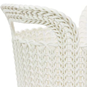 O cesto organizador da linha knit - trançado, redondo, 3l, curver oasis - apresenta a tendência da tecelagem new-wave, que mistura perfeitamente a arte e a nostalgia de tecidos de malha, a conveniência de ser fabricado em plástico altamente resistente. Essa linha agrega elegância a todos os cantos da casa.