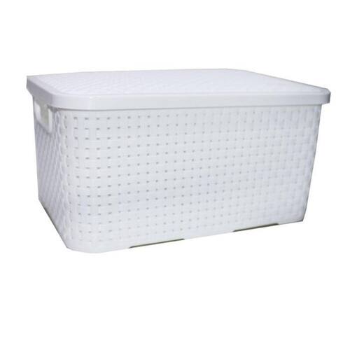 Cesto Organizador M Ratan Telado Com Tampa Branco 137153