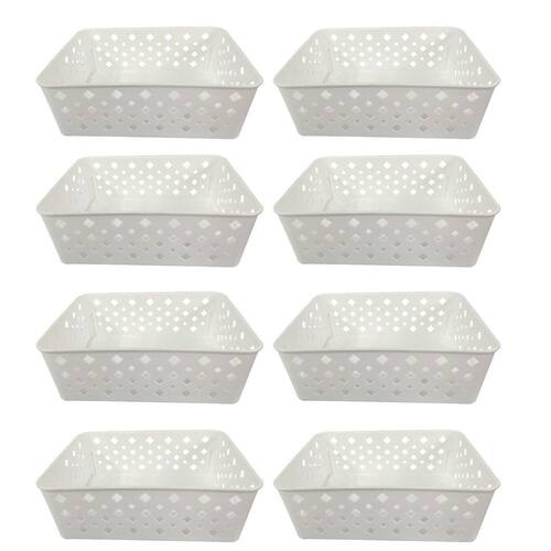 O Kit 8 Cesto Multiuso Organizador Premium Branco123Organizei é perfeito para manter seus objetos organizados de forma prática e funcional. Com medidas de 19x13,5x6,5 cm, esses cestos são ideais para armazenar diversos itens em qualquer ambiente da casa.