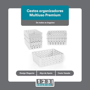 O Kit 8 Cesto Multiuso Organizador Premium Branco123Organizei é uma excelente opção para organizar utensílios de cozinha, materiais de escritório, acessórios de banheiro, brinquedos, maquiagem e muito mais. Com tantos cestos, você pode distribuí-los em diferentes cômodos da casa e manter tudo em ordem.