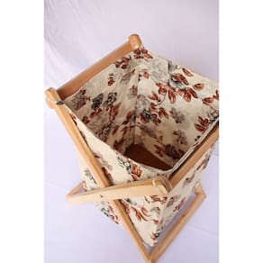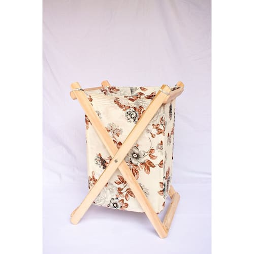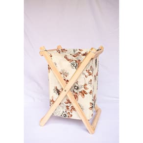 Cesto organizador multiuso com estrutura em madeira maciça e tecido florido, leve, resistente, prático pode ser utilizado no banheiro, quarto, sala, lavanderia, cozinha. Dobrável, capa removível que pode ser lavada. Uma excelente escolha, pois pode ser utilizado como cesto de roupas, brinquedos, revistas entre outros