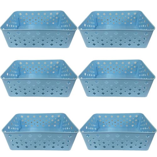 Kit 6 Cesto Multiuso Organizador Premium Azul 123Organizei