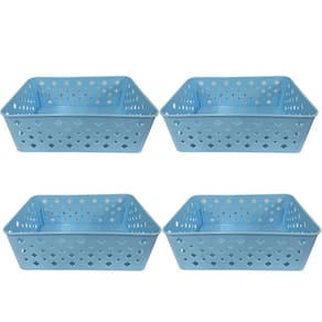 Feitos em plástico resistente, os cestos possuem medidas de 19x13,5x6,5cm, garantindo espaço suficiente para acomodar os seus objetos de forma organizada. A cor azul traz um toque de estilo e sofisticação, combinando perfeitamente com qualquer ambiente.