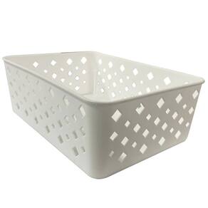 Fabricado em plástico resistente, o cesto possui a cor branca, que combina com qualquer ambiente. Suas medidas são 19x13,5x6,5 cm, ideal para acomodar diversos objetos, desde materiais de escritório até produtos de higiene pessoal.