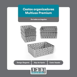 O Kit 4 Cesto Multiuso Organizador Premium Cinza 123Organizei é perfeito para manter a sua casa sempre organizada. Com design moderno e funcional, esses cestos são ideais para armazenar e organizar diversos objetos, desde utensílios de cozinha até produtos de higiene pessoal.