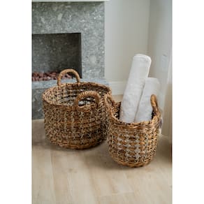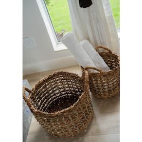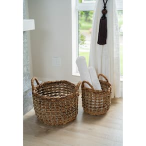 Cesto Organizador Redondo Em Fibra Natural Com Trama E Alça Mart 46x43cm -