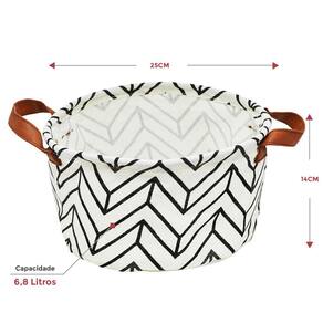 - Medidas: 25 x 14 diâmetro x altura - Alças laterais para puxar de couro sintético - Resistente a água e poeira - Dobrável - Ideal para organizar pequenos objetos, toalhas de rosto, meias e etc...