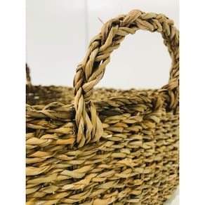 Os Cestos de Seagrass são mais do que simples objetos de armazenamento, são uma fusão de funcionalidade e beleza natural. Feitos à mão a partir de fibras Seagrass entrelaçadas, material derivado de plantas aquáticas, estes cestos oferecem uma estética encantadora que complementa qualquer ambiente. Disponíveis em tamanhos, pequeno, médio e grande, estes cestos se adaptam as necessidades de organização de qualquer espaço. Seja para guardar roupas, brinquedos e até mesmo servir como fruteira. Possuem alças facilitando o transporte e dando mais segurança para armazenar objetos mais pesados.