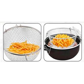 Cesto para Fritura Aço Inox com Alça Redondo 20cm Cesto de Fritura Inox com Alça Redondo 20cm - Qualidade e Praticidade na Sua Cozinha Eleve o preparo das suas frituras com o Cesto para Fritura em Aço Inox de 20cm, a escolha ideal para quem busca praticidade, durabilidade e resultados profissionais em casa. Desenvolvido para garantir frituras sequinhas, crocantes e saborosas, este cesto é indispensável para sua cozinha, seja para batatas fritas, frango, legumes ou outros alimentos. Material Premium em Aço Inox Resistente Produzido em aço inox de alta qualidade, este cesto oferece resistência à corrosão e suporte a altas temperaturas, o que assegura maior durabilidade e segurança durante o uso. O acabamento em aço inox liso facilita a limpeza, podendo ser lavado manualmente ou em lava-louças, garantindo praticidade no seu dia a dia. Design Funcional e Ergonômico Com formato redondo e dimensões perfeitas 20cm de diâmetro e 8cm de altura , o cesto é ideal para preparar porções individuais ou para compartilhar. A alça segura e ergonômica proporciona conforto e firmeza no manuseio, facilitando o mergulho e a retirada dos alimentos do óleo quente com segurança, sem risco de queimaduras. Frituras Uniformes e Crocância Garantida O design de malha do cesto permite que o óleo escorra facilmente, promovendo uma fritura uniforme e mais sequinha. Seu formato assegura que os alimentos fiquem totalmente imersos no óleo, resultando em cozimento perfeito e textura crocante, preservando o sabor e qualidade. Versatilidade para Diversos Alimentos Ideal para fritar diversos tipos de alimentos, desde batatas, frangos e legumes até petiscos variados, o cesto é um utensílio versátil que transforma o preparo das suas refeições. Seu tamanho e resistência permitem o uso tanto em fritadeiras tradicionais quanto em panelas, adaptando-se à sua necessidade. Especificações Técnicas Modelo: Cesto para Fritura Redondo Material: Aço Inox resistente à corrosão e altas temperaturas Dimensões: 8 cm altura x 20 cm diâmetro x 10,7 cm comprimento da alça Cor: Prateado Peso: Leve e resistente para fácil manuseio Uso: Compatível com panelas e fritadeiras tradicionais Limpeza: Fácil de limpar, lavável à mão e em lava-louças Conteúdo da Embalagem 1 x Cesto para Fritura em Aço Inox com Alça de 3 Meses para Sua Tranquilidade Confiamos na qualidade e durabilidade do nosso Cesto para Fritura Inox, por isso oferecemos de 3 meses contra defeitos de fabricação. Durante esse período, você pode contar com nosso suporte dedicado para qualquer eventualidade, assegurando sua satisfação e confiança na compra. A não cobre danos causados por uso inadequado, portanto recomendamos sempre seguir as instruções de uso e cuidados indicados. Cesto para fritura inox, cesto fritura 20cm, cesta para fritar alimentos, cesto inox para fritadeira, cesto com alça, utensílio cozinha inox, cesto fritura resistente, cesto para fritar batatas, cesto para fritar legumes, cesto para frango crocante