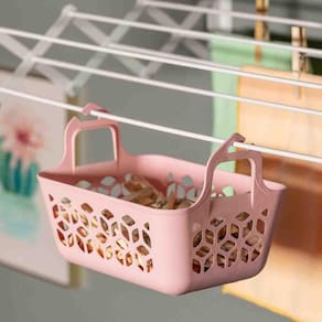 Cesto para prendedores de roupa com gancho. O cesto para prendedores de roupa de plástico é um acessório muito útil para quem busca organização e praticidade durante o processo de lavagem e secagem de roupas. O Cesto é feito de plástico resistente e flexível, tem um tamanho ideal para armazenar e transportar prendedores de roupa. Ele possui 2 Ganchos para pendurar no varal, ele é ideal para quem precisa de um lugar organizado para armazenar seus prendedores de roupa e evitar que eles se espalhem pela área de lavagem ou se percam.