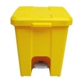 Medidas: 450mm altura x 335mm largura x 310mm profundidade . Lixeira plástica quadrada com pedal.