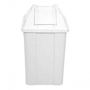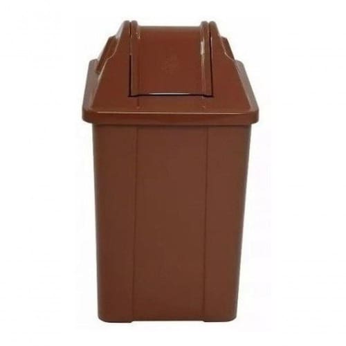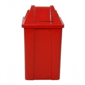 Cesto e tampa basculante confeccionados em plástico polipropileno (PP) copolímero com proteção U.V.O aditivo é para proteção U.V do pigmento e matéria prima.Possui cantos arredondados superfície de fácil limpeza, sua tampa basculante não permite o contato direto com o lixo.Acompanha 4 (quatro) ganchos plásticos para fixação do saco de lixo.