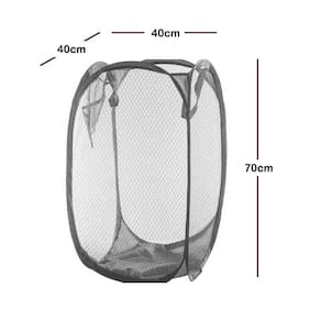 Organizador dobrável multiuso para roupa suja, brinquedos e objetos Soltando do pacote ele se monta sozinho Confeccionado em tela de nylon para ventilação Alças laterais para transporte