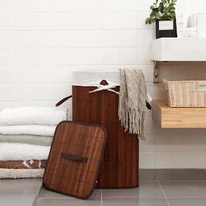 Foco na organização e estilo Cesto roupas sujas bambu retangular forrado banheiro grande
