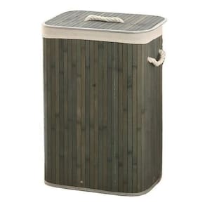 Cesto roupas sujas bambu retangular forrado banheiro grande Cor: cinza Nome do produto: cesto roupas sujas bambu retangular forrado banheiro grande Adorno entrancado de bambu - cesta 60x40x30 cm- acondicionado em caixas