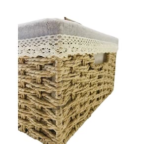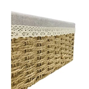 Feitas com material de alta qualidade, incluindo metal na sua estrutura, fibra natural trançada e um forro 100% algodão com detalhes em renda, eles são tão elegantes quanto versáteis. A estrutura de metal oferece durabilidade e resistência, enquanto a fibra natural proporciona um visual leve e arejado. O forro do cesto proporciona uma superfície macia e charmosa para suas apresentações e podem ser retirados para higienização.