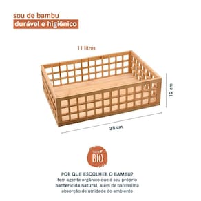 Características: - Dimensões Práticas: Com 38 cm de diâmetro, 27 cm de altura e 11,5 cm de profundidade, é perfeito para uma variedade de usos. - Material Sustentável: Fabricado em bambu, um material leve e resistente, que combina durabilidade com estética. - Fácil Limpeza: Pode ser lavado em água corrente utilizando uma esponja e detergente, garantindo praticidade no seu dia a dia. - Cuidados Simples: Para preservar a qualidade, evite a umidade e armazene em locais secos e arejados.