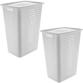 Cestos Organizadores com Tampa OU 47L para Roupas Lavanderia 2un Brancos Área de Serviço.