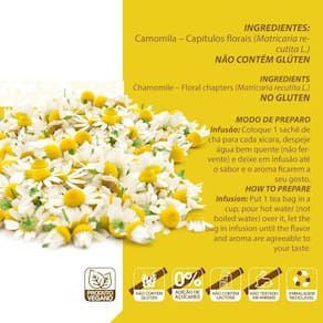 Chá camomila clinic mais 10 sachês 10g Sobre o produto: o chá de camomila chámais possui propriedades e antiespasmódica. Possui benefícios calmantes e digestivos, auxiliando a aliviar o , insônia e problemas estomacais. Modo de preparo: coloque 1 sachê de chá para cada xícara, despeje água bem quente não fervente e deixe em infusão até o sabor e o aroma ficarem a seu gosto. Ingredientes: camomila. Após aberto, consumir em até 60 dias. Conserve ao abrigo de luz, calor e umidade. Alergênico: -não contém glúten.