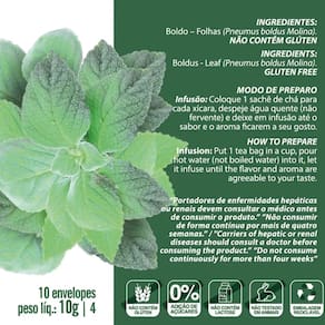 CHÁ DE BOLDO Vegano- 10 Sachês - 10g cada, Kit 10.